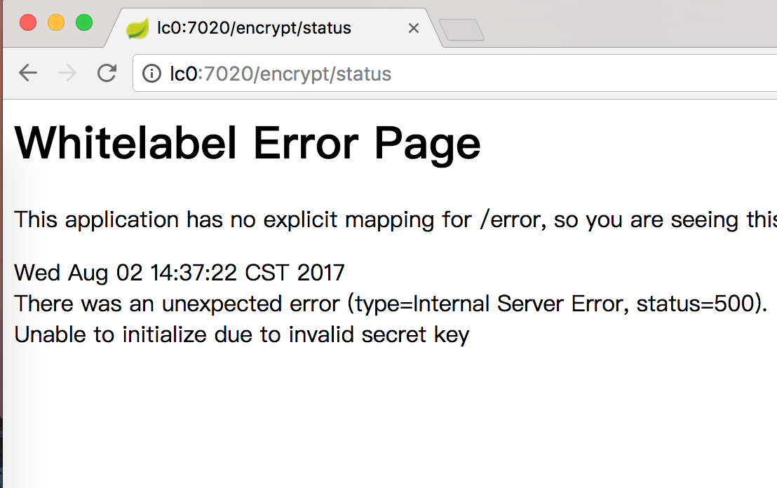然后重新编译后运行,再次访问 /encrypt/status 看到如下错误: