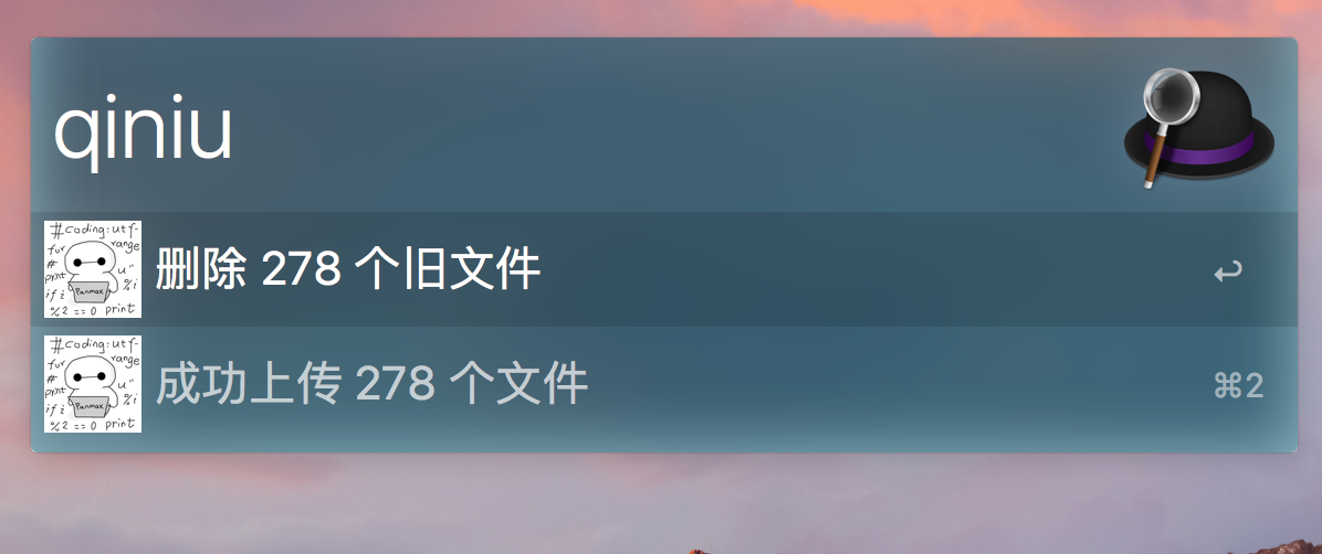 接下来就是把博客生成出来的静态站按照目录结构完整上传到七牛就行了,但是这个工作非常麻烦,每次上传时如果有二级目录的话,需要自己填写前缀,而且每次生成后都需要自己登录到七牛上传一下。身为程序员的我,这不是在侮辱我的智商吗?所以我写了一个 Python 脚本,可以帮我自动完成这个工作。