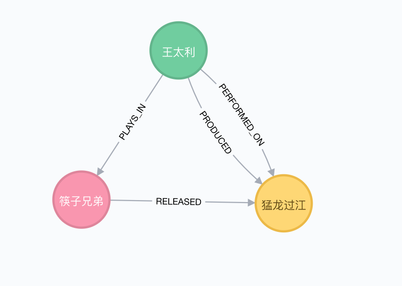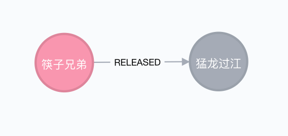 接下来是用来创建关系的 CREATE 语句,在这个例子中,它通过我们在第一行中给出的变量名称(ab)来引用两个节点,关系是通过字符画模式,用箭头指示关系方向来建立的:(a)-[r:RELEASED]->(b)
