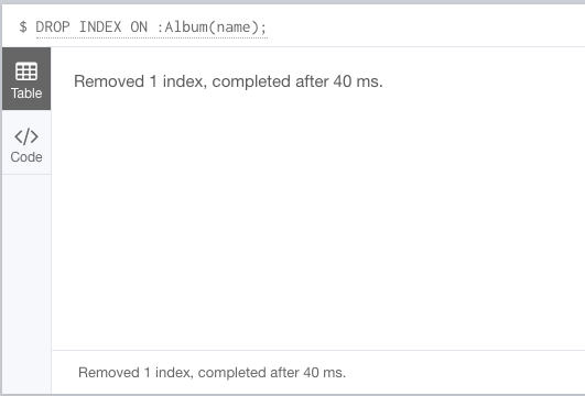 你现在可以使用 :schema 命令来验证对应的索引是否已经从模式中删除。