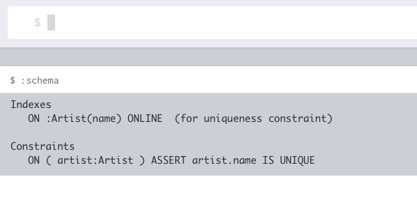 你现在可以使用 :schema 命令来验证对应的索引(和相关联的约束)是否已经从模式中删除。