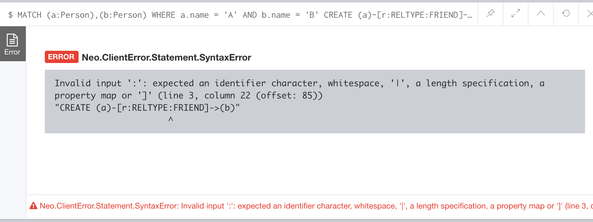 如下图所示,在尝试用多种类型创建关系时,会报错: