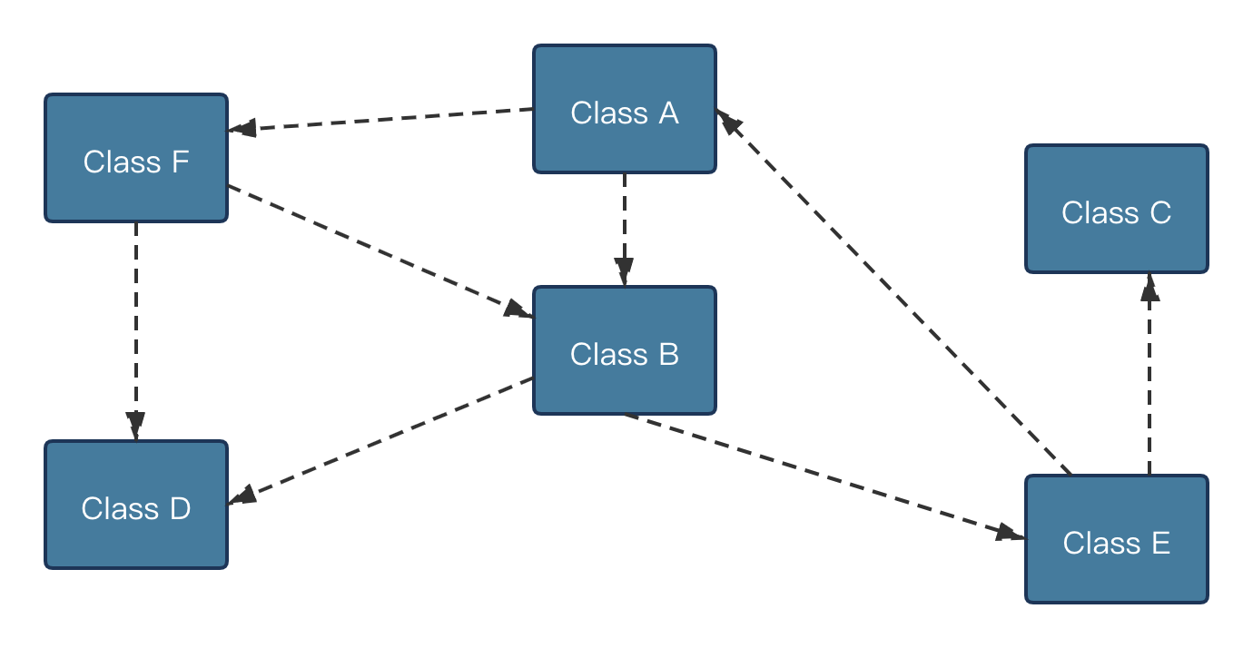 举个例子:如果系统中只存在类A和类B,那么他们之间的依赖关系就非常容易识别。