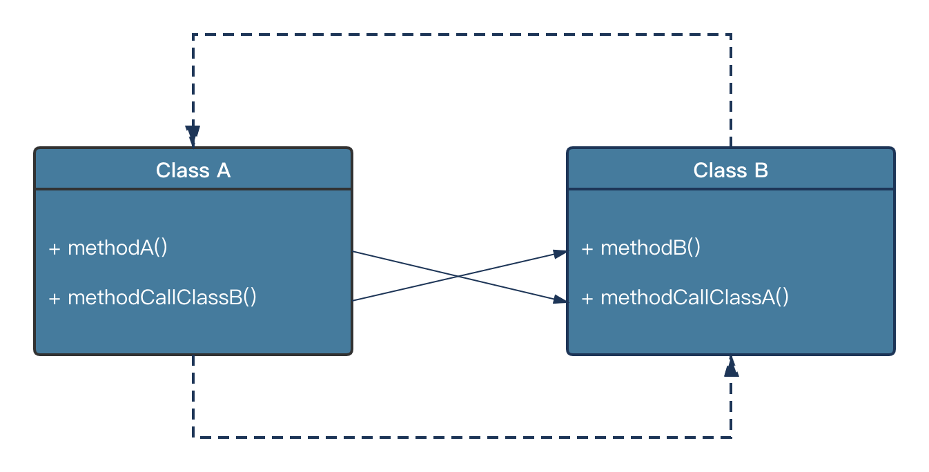 一种常见的复杂关系为类与类之间的循环依赖关系。