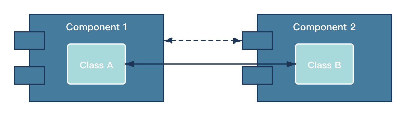 如果一个系统中存在几十个类,那么他们之间的依赖关系就很难通过简单的关系图进行逐一列举。一般的系统中类的数量显然不止几十个。更宽泛地讲,类之间的这种循环依赖关系也可以扩展到组件级别。产生组件之间的循环依赖的原因在于:组件1中的类A与组件2中的类B之间存在循环依赖,从而导致组件与组件之间产生了循环依赖关系。