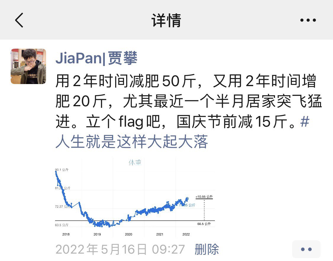 还是上边减肥的那个朋友圈,无论有没有减到自己承诺的体重,我都会在十月一日当天把结果公布出来。
