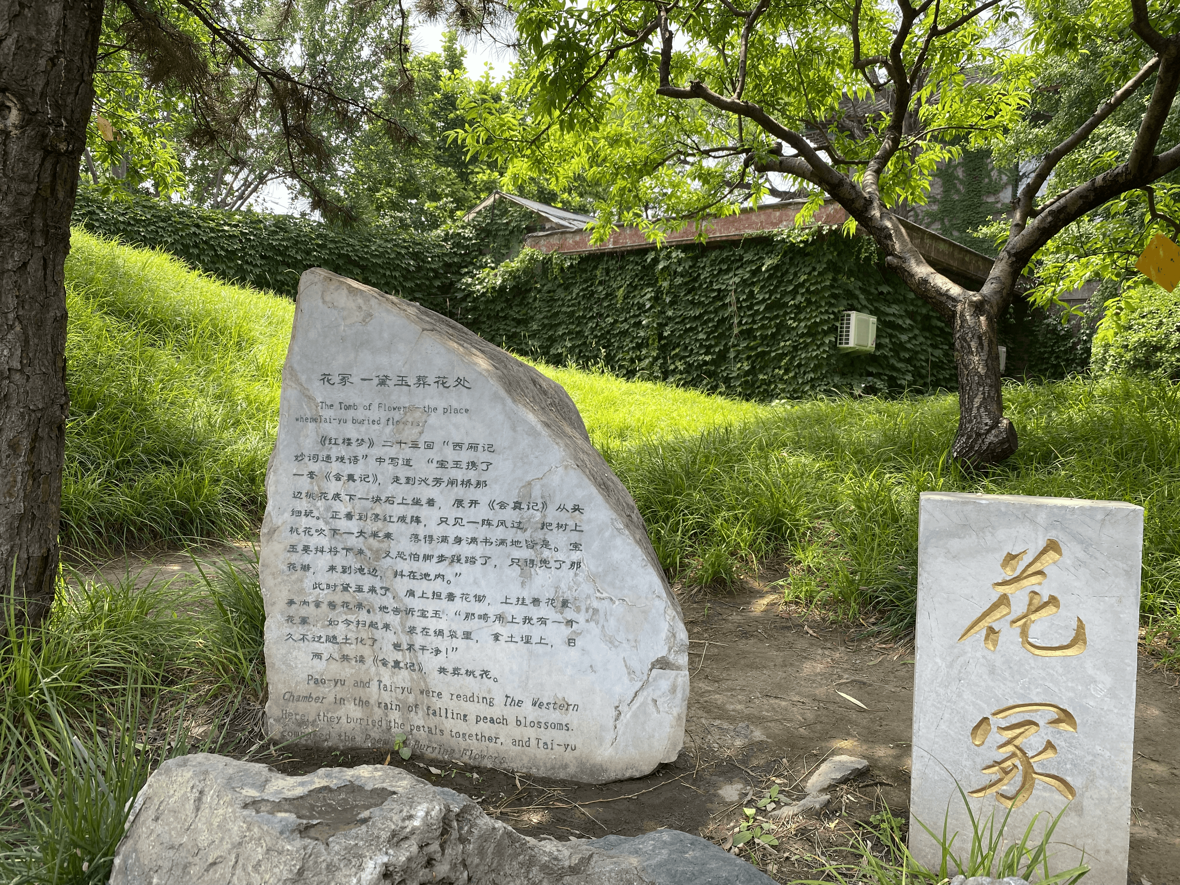 因为先前读过几遍红楼梦,所以看到每一处景观都能回想起书中在这里发生过的故事,比如看到花冢,就会想到黛玉的葬花词:「侬今葬花人笑痴,他年葬侬知是谁?」