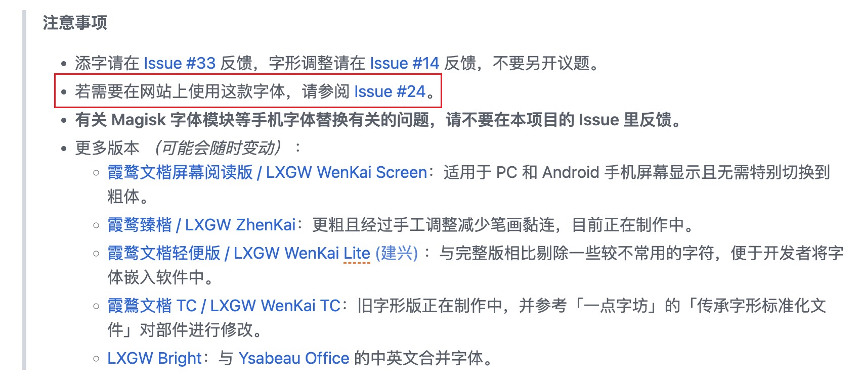 我也将这款字体改为了我 Drafts 上的默认字体,试用了几天感受确实不错,所以想作为博客字体来使用。因为官方仓库的下载链接只提供了 ttf 格式,我不知道如何应用在 Web 上,所以搁置了几天,今天想再次折腾下看,再次阅读官方文档看到注意事项中写着: