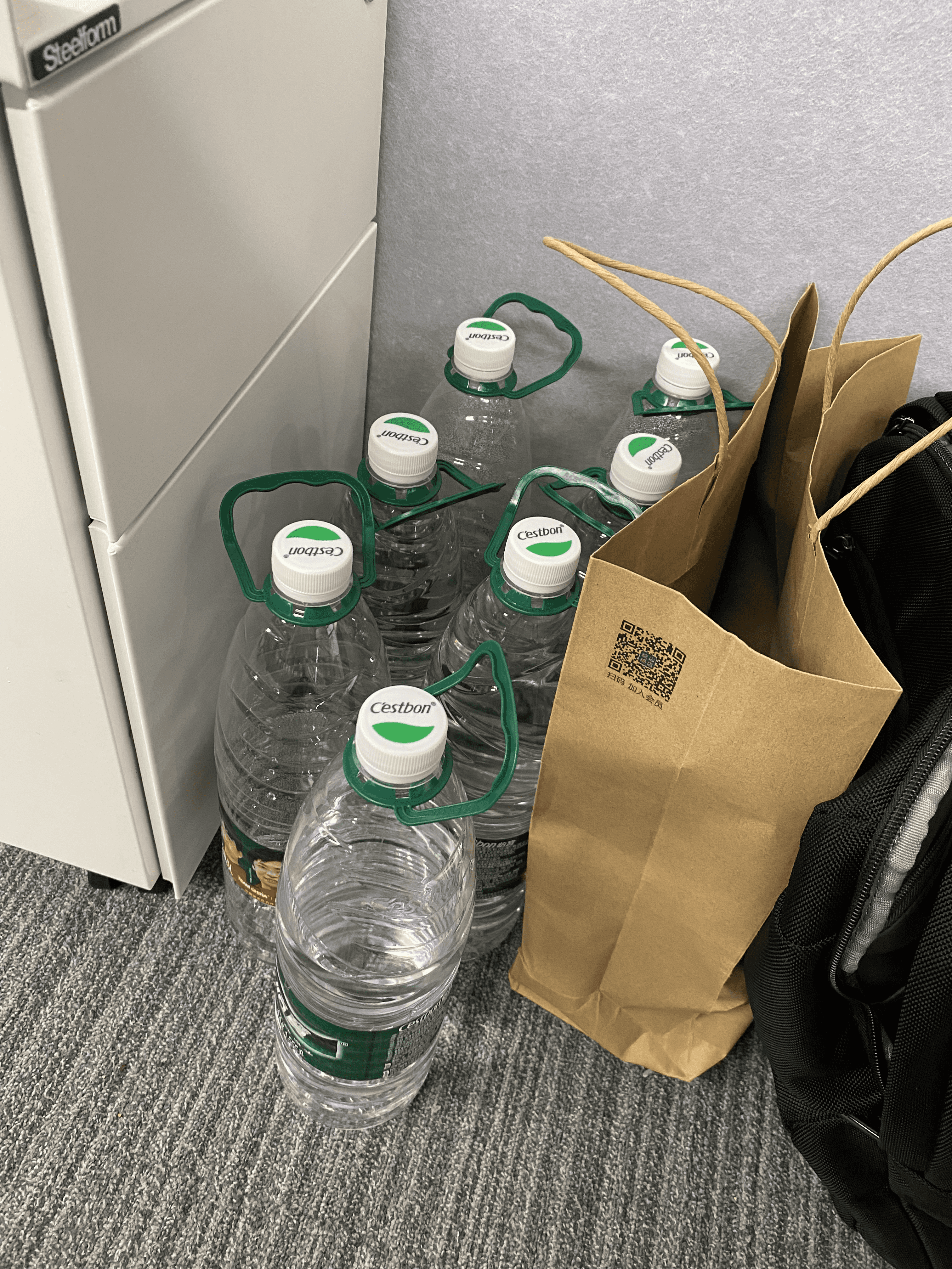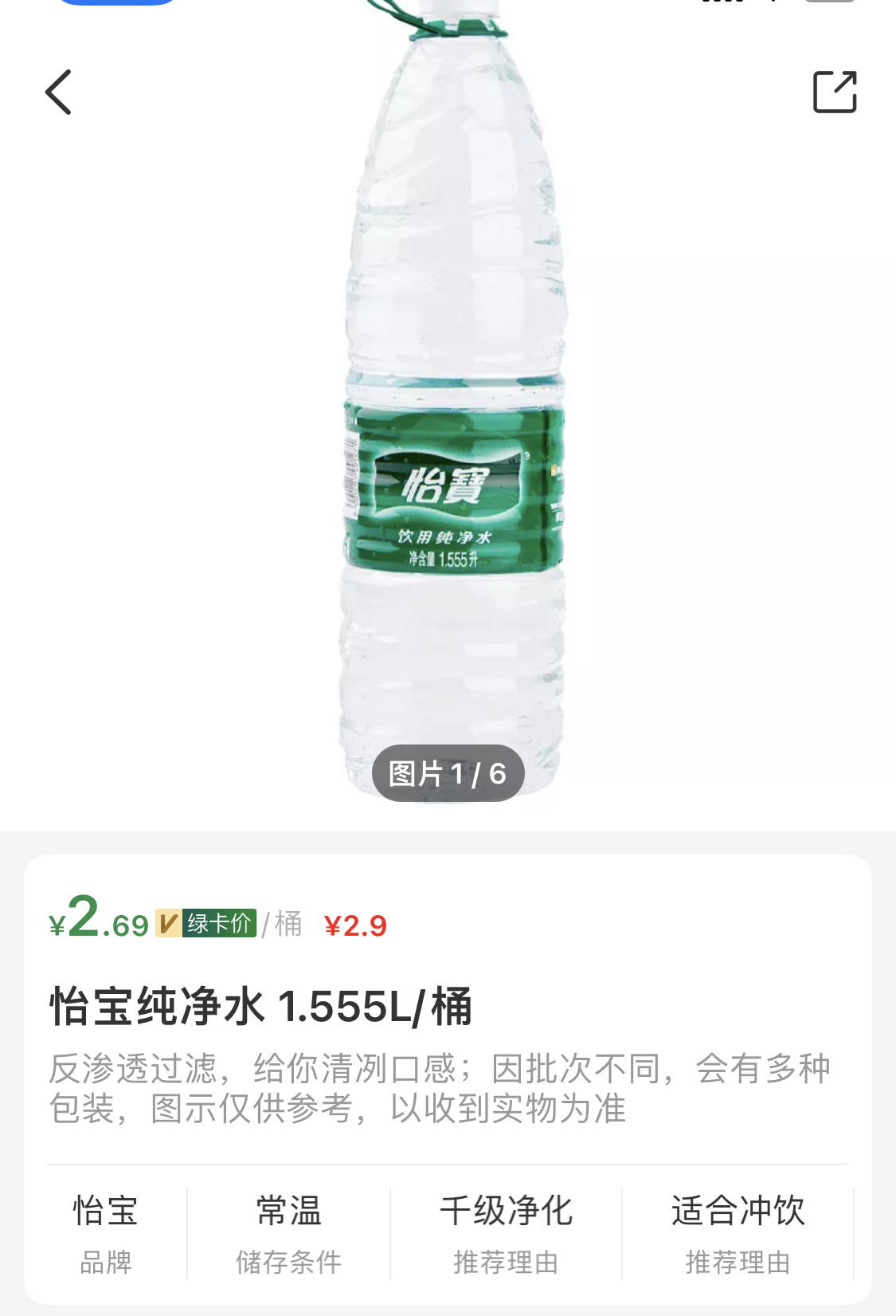 最近我自创了一个方法来量化我的喝水量,已经尝试了两周,效果很不错,而且比较简单、易操作,我定期用叮咚买菜购买 4-5 桶怡宝 1.555 升装的纯净水,每天就定量喝这一桶水。因为我平时都在有空调的环境中办公,而且也没有特别大的运动消耗,所以 1.555 升是个比较合理的量。而且这个水的价格也并不贵,每天不到 3 块钱花在喝水上很值,并且因为有了这个水,我就不会再去买其他饮料了,反而节省了一笔开支。