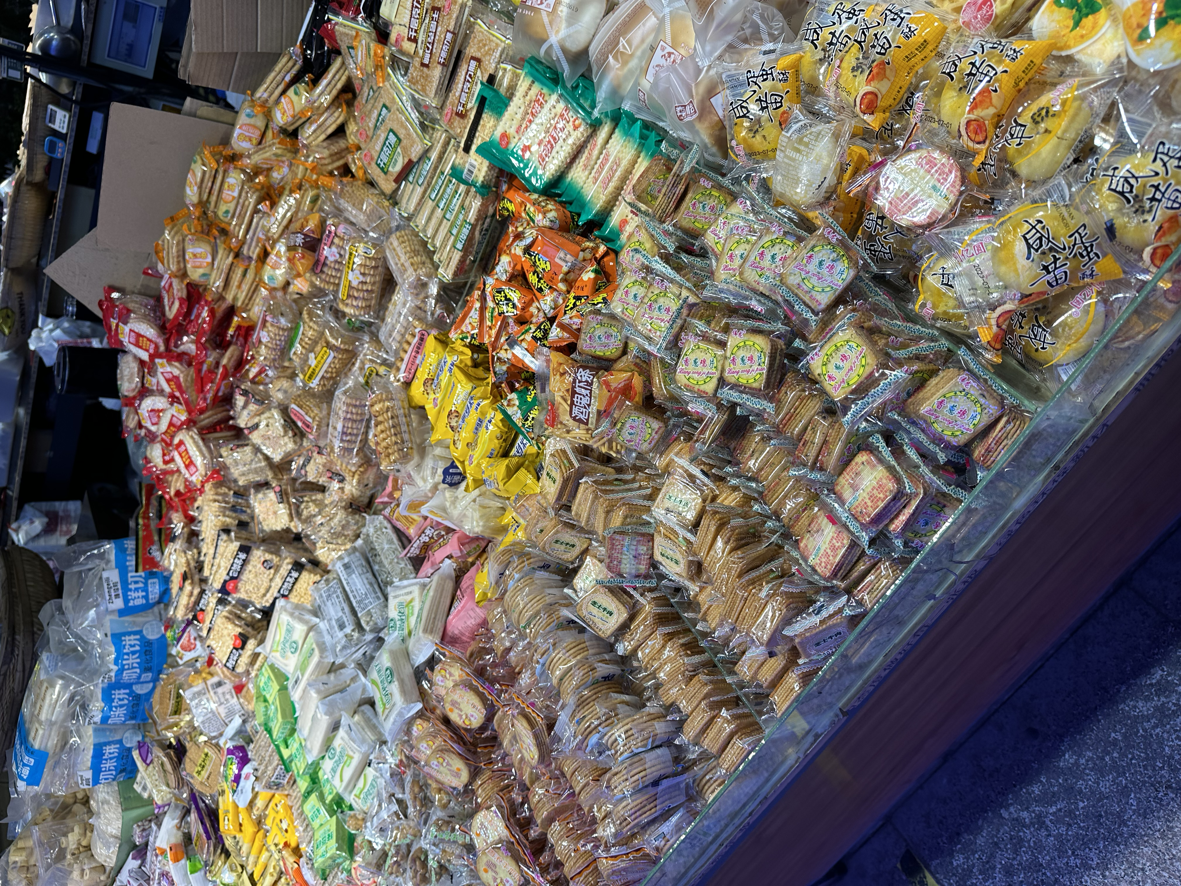 还买了几个巨大的桃子,夏天我最喜欢吃的两样水果是西瓜和桃子,路过一个零食小摊,混着买了些小零食,其中的香葱鸡片小饼干是我的童年记忆,虽然小时候吃顶过,现在还是喜欢吃。