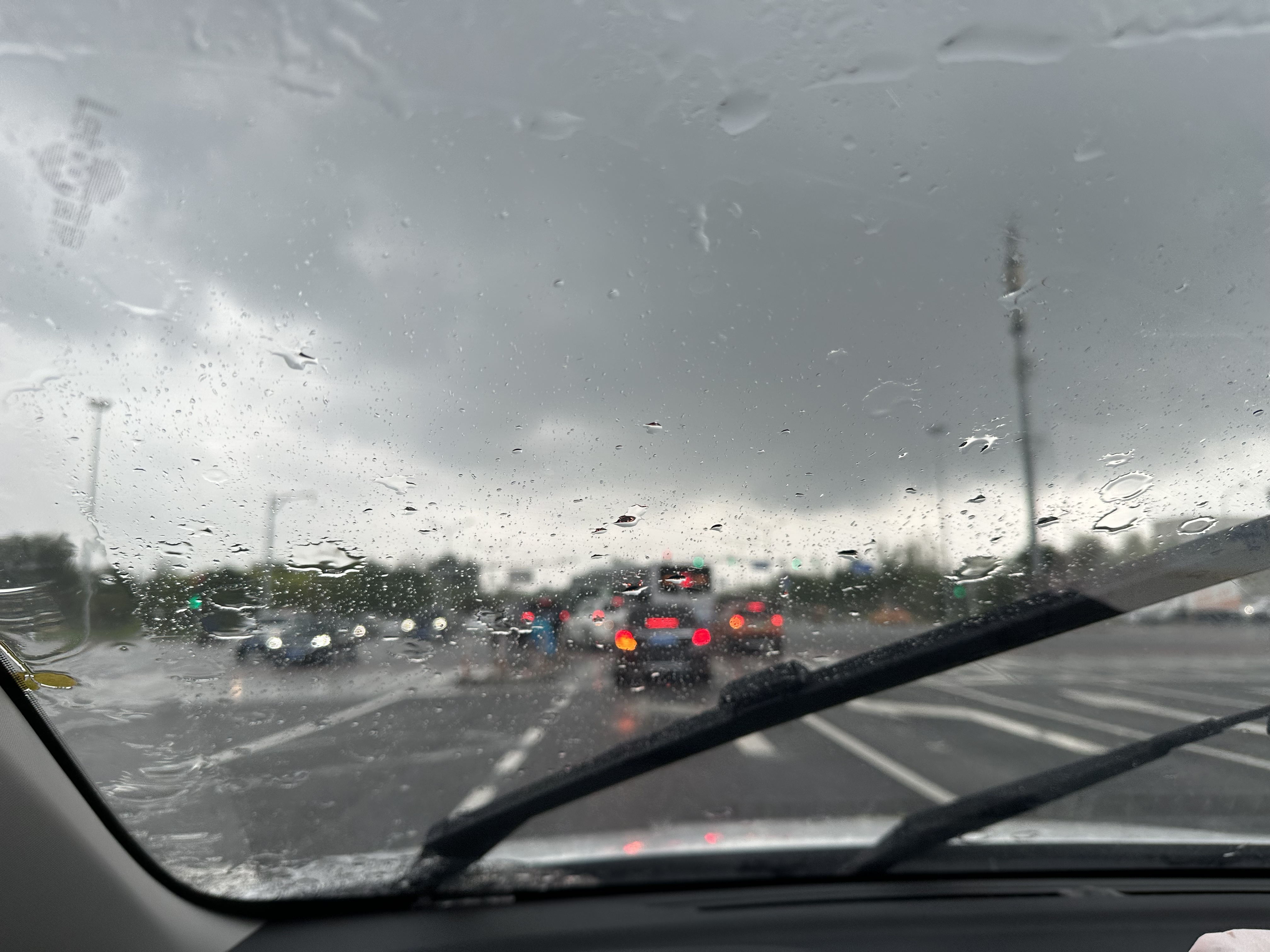 开到一半的时候,天气突然大变,下起了瓢泼大雨,很庆幸自己选择了开车。