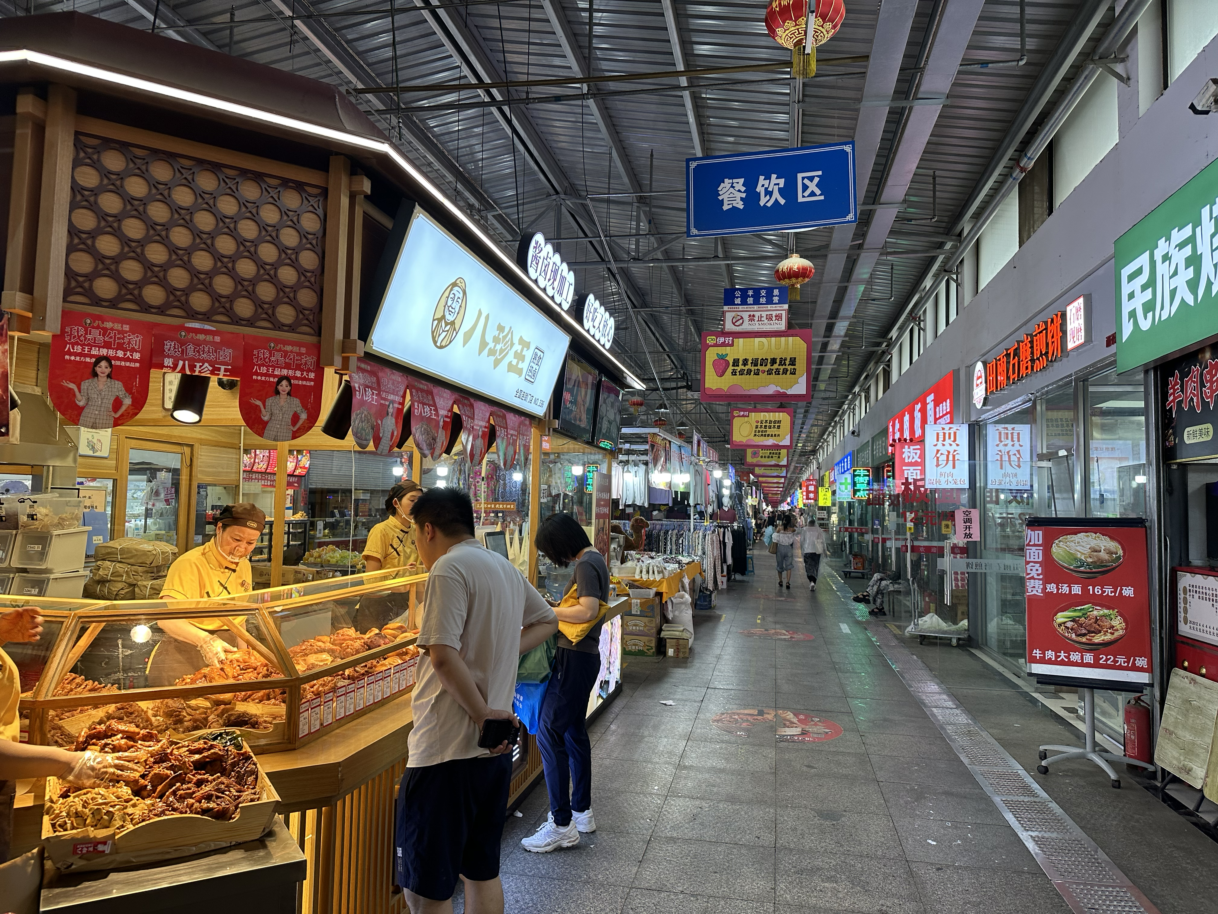 开到地点后雨势也减小很多,百姓菜篮子门脸不大,但进去后别有乾坤,是个极长极长的通道,中间、两边挤满了商家,与其说是个菜市场,不如说是个百货市场,里边卖什么的都有。