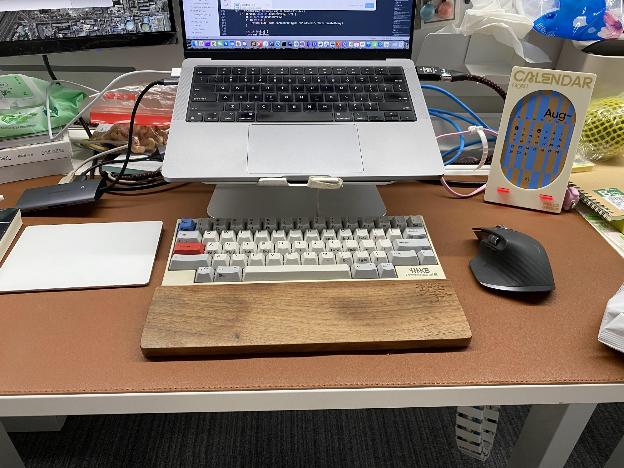 这个 HHKB 键盘到现在陪伴了我8年多年,电脑换了好几个、工作换了好几份,没换的一直是这个键盘。有点像换马不换鞍的感觉,HHKB 一直作为我最亲密的战友陪伴着我,我在公司写代码、调戏妹子、和其他人对喷都离不开它,我在公司拍工位照片时也都有它的身影。